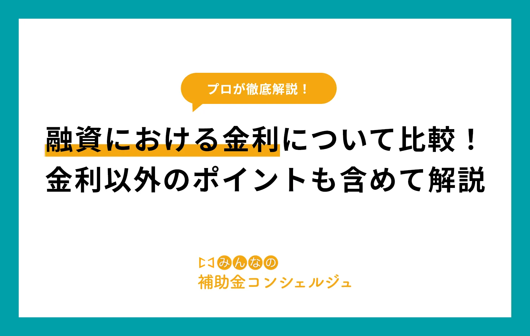 よって融資の金利は、借入コストに直結するため非常に重要です。